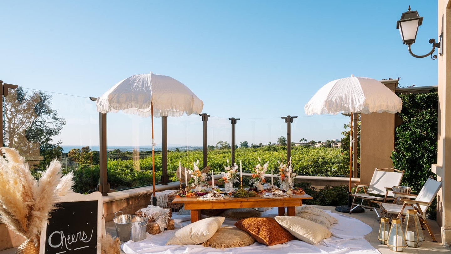 - Arrive to chilled champagne and a California cheese board in the Villa followed by lunch on the terrace of the Villa Clubhouse.