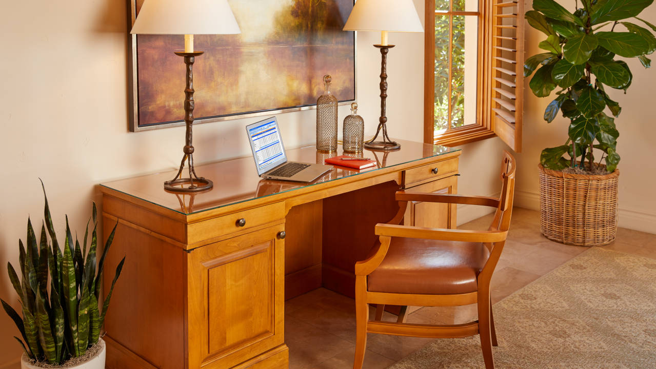 The single-story three-bedroom residence offers the rich details of a private home in a relaxed resort setting.